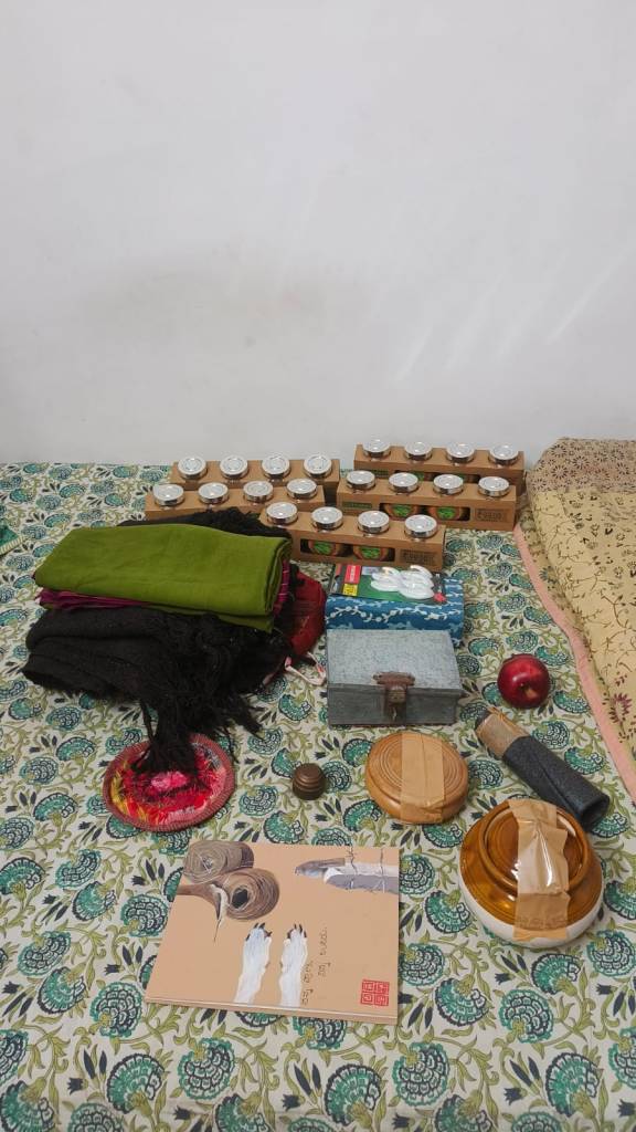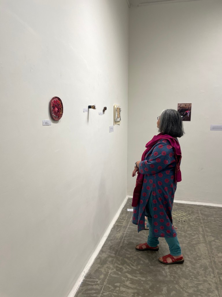 The Homelabour Collective (formerly known as just The collective) began as a gathering ground for artists. When we began in August 2024 it was three of us,Advithi Emmi, Dhanya Rajaram, and Seema Jain. We met at regular intervals(almost every weekend) and talked about a chosen subject(we got turns to choose) for twelve weeks. There were no boundaries on how to respond, and anything from simply asking questions to creating something physical or palpable was acceptable.