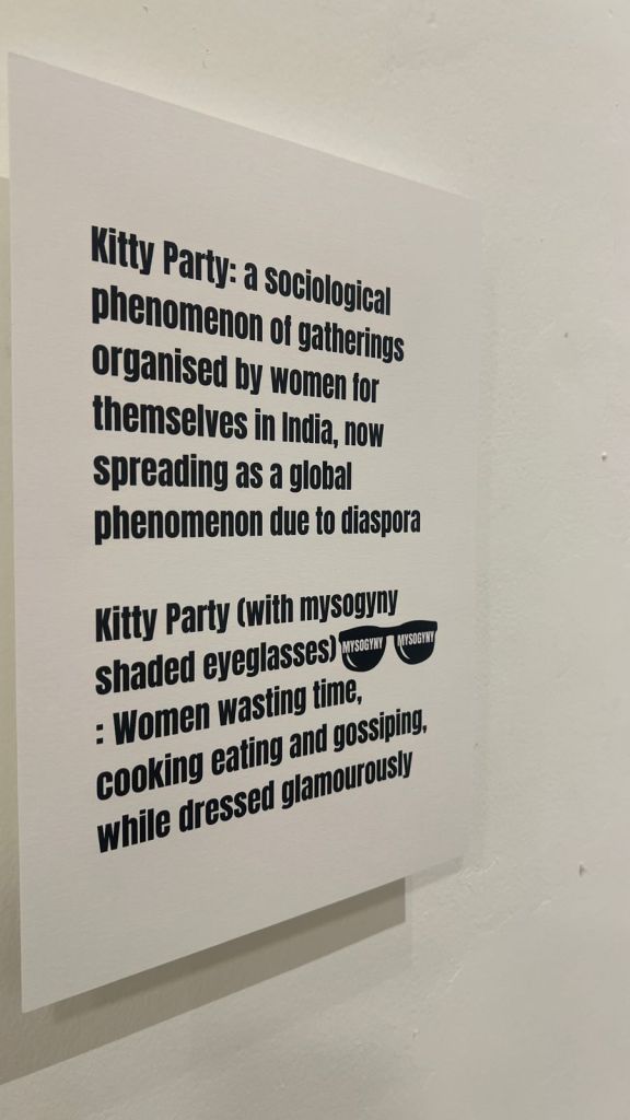 The show’s title was inspired by a serendipitous offhand remark about our meetings, that we were hosting ‘Kitty Parties’. The remark and tone were meant to imply that our discourse was not ‘serious’ or genuinely artistic.