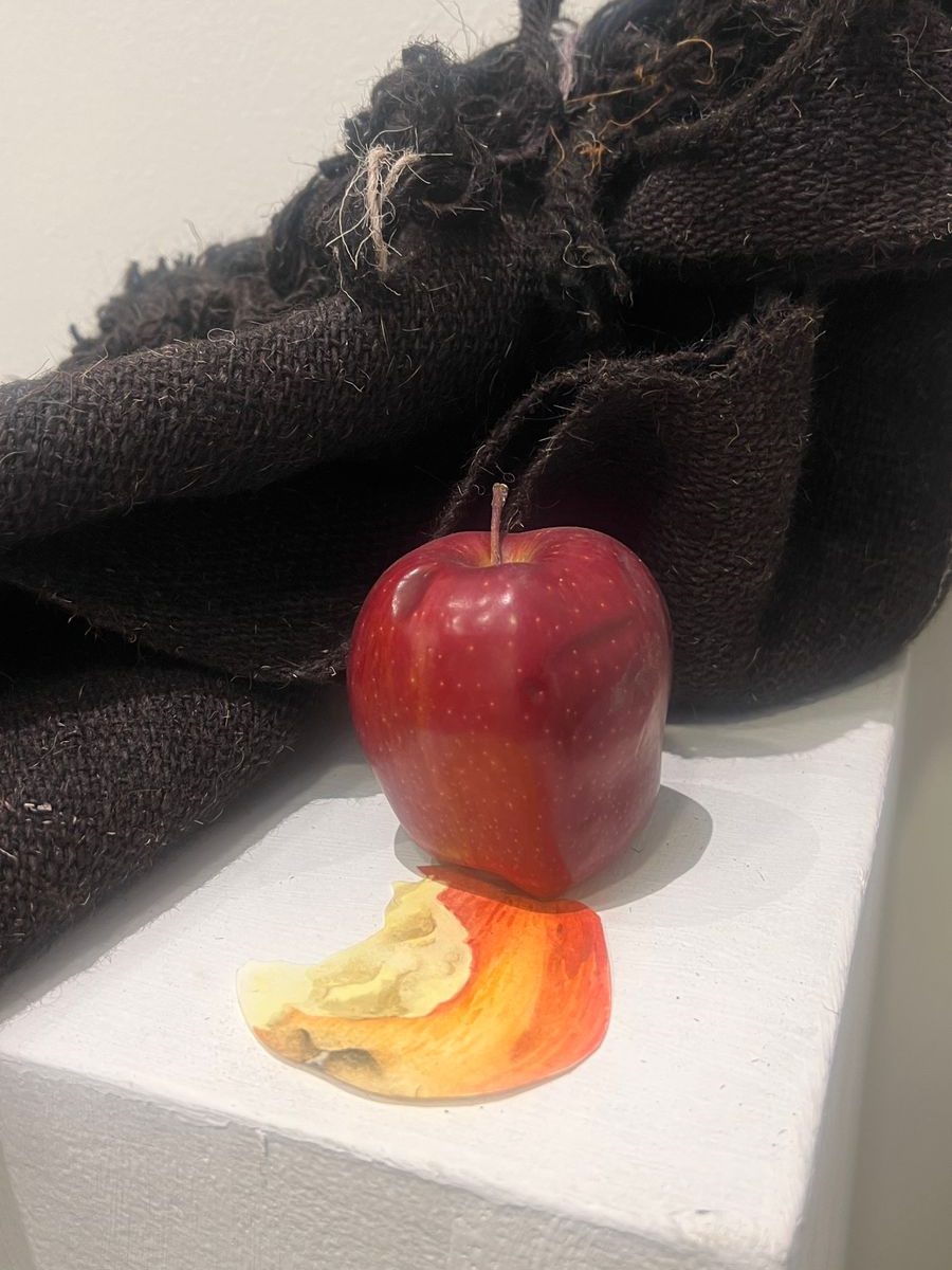 Apple, Gouache on Paper, Kambali(props used during the performance) 2024