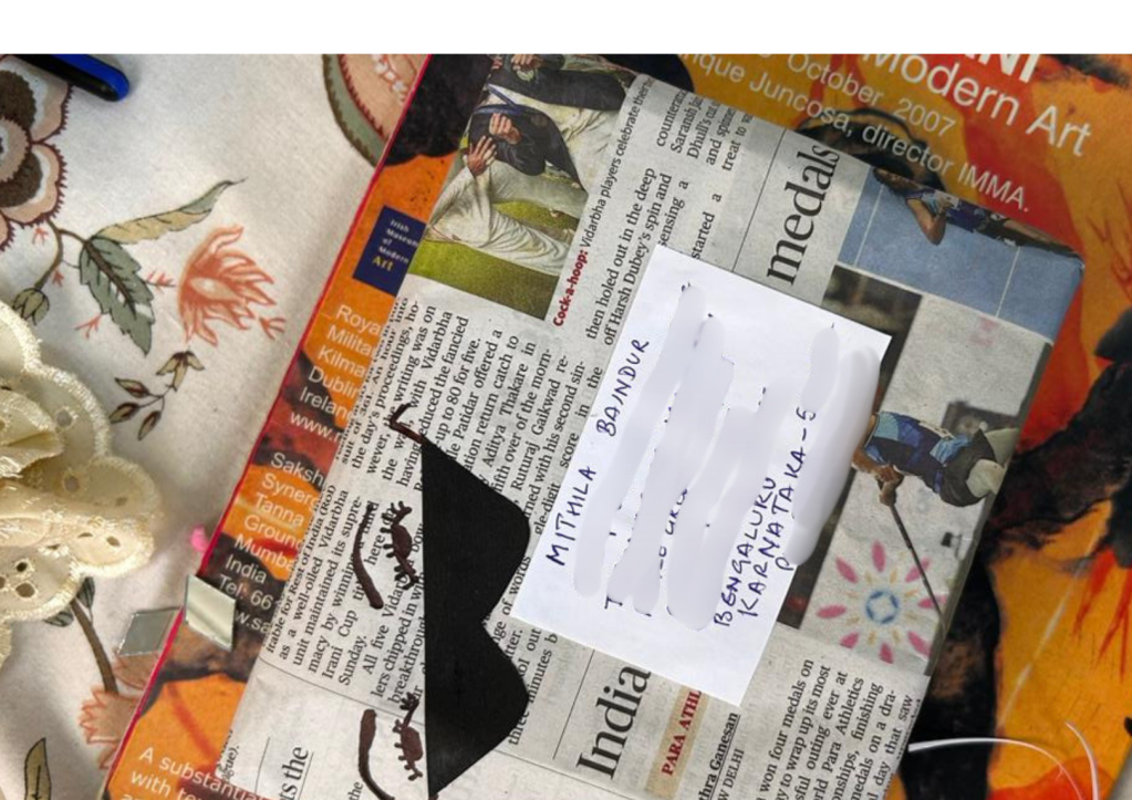The mail art project was conceptualized as a means to interact, collaborate and create art through mail. Akin to the idea of pen pals, artists were assigned another artist collaborator every month. The artists created art or conceptualized ideas or sent materials to their counterparts which were worked further on and then completed in theory of form by the receiving artist.