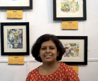 A recipient of two grants from India Foundation for the Arts, Mukherji has contributed to art-in-education initiatives in Karnataka. She also illustrates food and designs books.